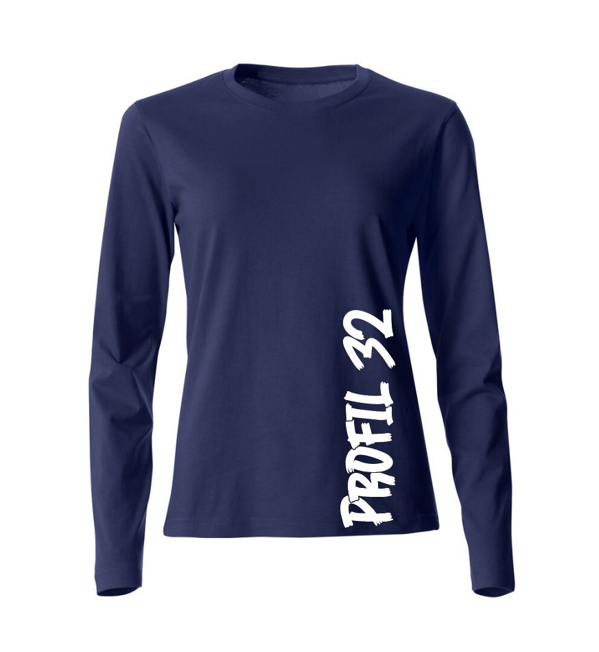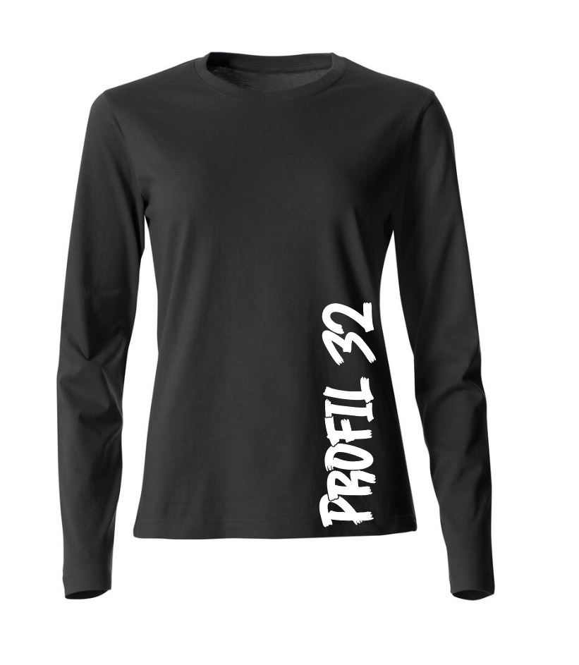 Långärmad t-shirt, med Profil 32 loggan. Plagget finns att beställa i flera olika färger, t.ex.: Blå, Grön, & Röd