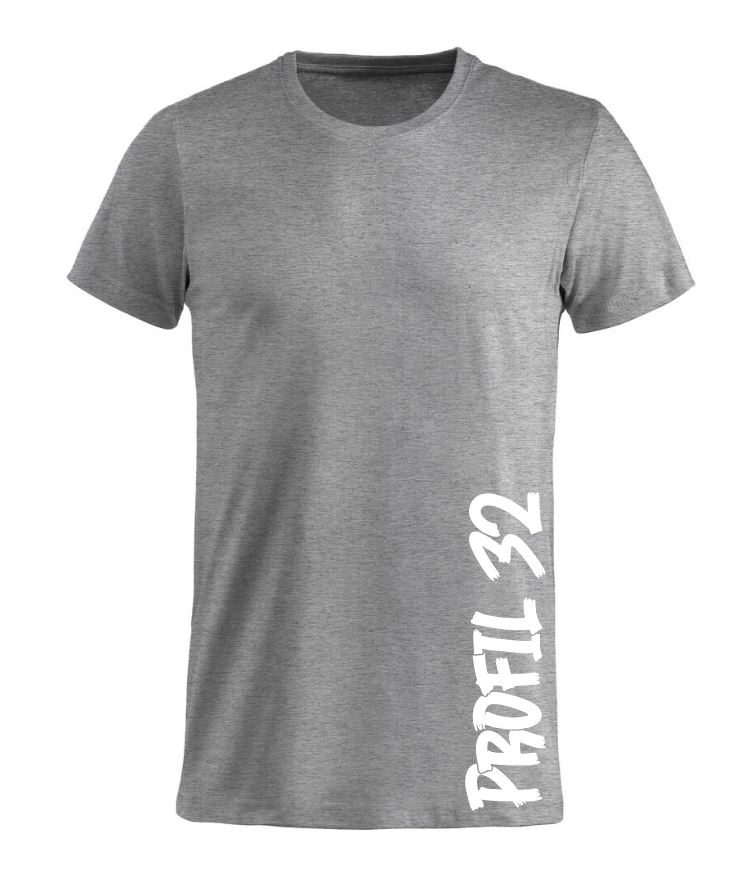T-shirten finns att beställa i flera olika färger, t.ex.: Blå, Grön, Röd & Mörkgrå